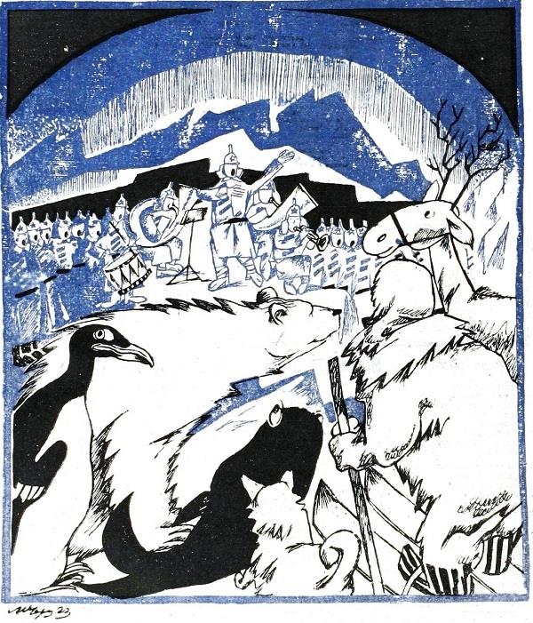 Под бодрый звон оркестра явились самоеды, и олени, и пингвины, и медведи: при северном сиянии состоялся первый концерт-митинг на берегу Ледовитого океана…