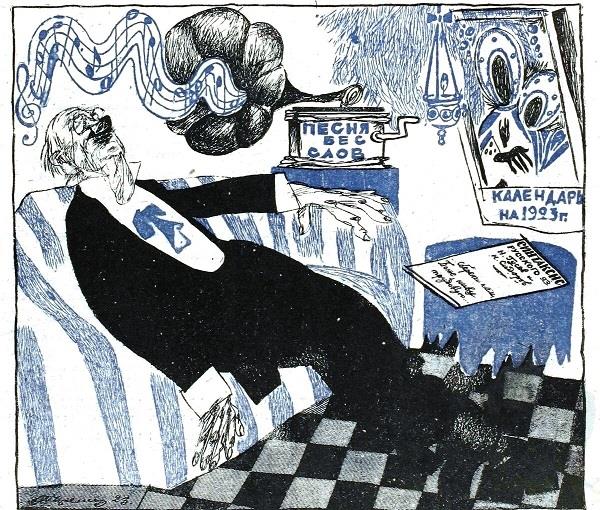 Обыватель: – Как хорошо жить под Госиздатом! Тут тебе и про доброго боженьку стишки, и календарь со святцами, и ноты, по которым, закрыв на всякий случай поглуше дверь, можно «Боже, царя храни» на пианино сыграть… Не-ет, жить еще можно нашему брату!