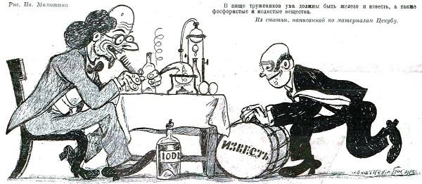В пище тружеников ума должны быть железо и известь, а также фосфористые и йодистые вещества. (из статьи, написанной по материалам Цекубу*).