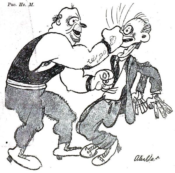 Автор – Дмитрий Моор, самый, наверное, знаменитый советский довоенный карикатурист, автор плакатов «Ты записался добровольцем», «Помоги!» и, как мне кажется, миллионов других. По крайней мере, листая «Крокодил», я прихожу в ужас от его работоспособности, а он еще и в других журналах работал, и плакаты рисовал, и книги иллюстрировал…