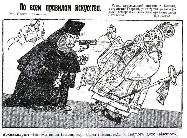 Глава православной церкви в Польше, митрополит Георгий, был убит тремя револьверными выстрелами Холмским архимандритом Латнченко. (из газет)