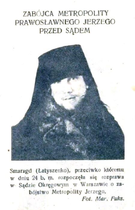 «…Архимандрит Смарагд являлся несколько раз к митрополиту Георгию с бурными объяснениями в неканоничности и изменах, и наконец, потерял душевное равновесие окончательно. Он приобрёл револьвер и, как уже потом выяснилось, тайно учился в лесу стрелять из него.