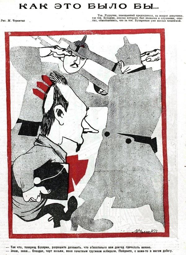 Так, в номере за 6 мая 1923 года вышла карикатура Михаила Черемных «Как это было бы».