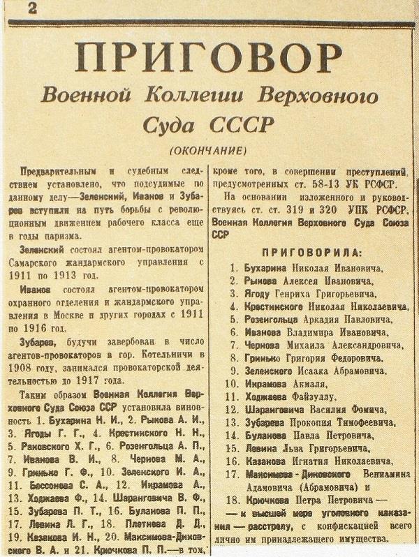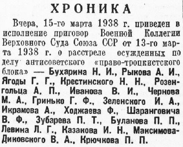 Вот приговор суда по делу Бухарина-Рыкова-Ягоды.