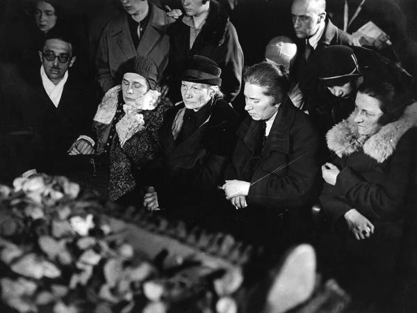 Похороны Маяковского. У гроба Маяковского мать и сестра.