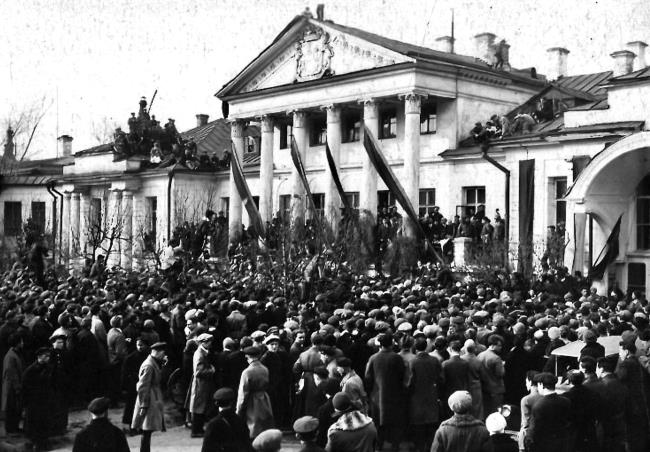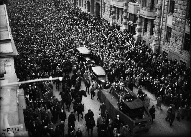 Траурный митинг во дворе Дома Писателей на улице Воровского. Фото И. Ильфа