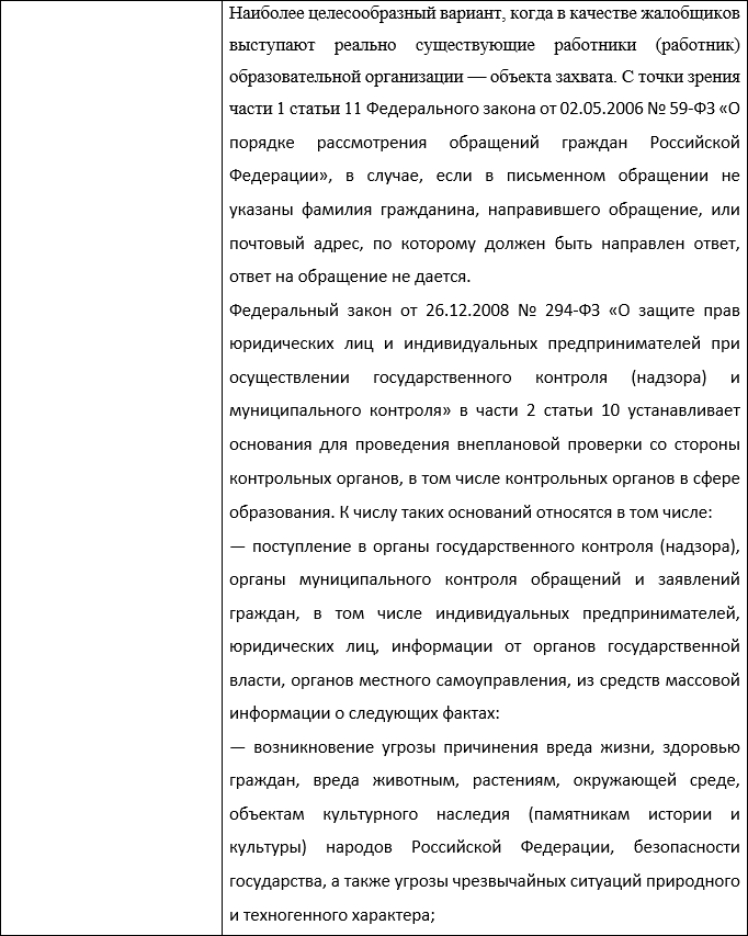 5. Рейдерский захват образовательной организации предполагает, прежде всего, обладание позицией руководителя, которая позволяет осуществлять кадровую политику, увольнять неугодных работников, назначать «своих» людей на руководящие должности, использовать имущество, распоряжаться финансовыми потоками и осуществлять иные полномочия, позволяющие управлять деятельностью образовательной организации в целом.