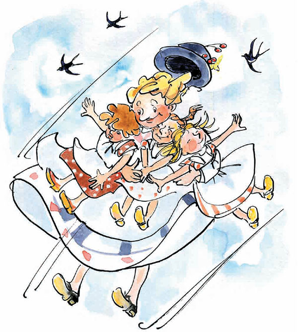 – Не нужно делать никакую пирамиду, просто держитесь покрепче за меня, и всё! – засмеялась Мармеладная бабушка и, обняв девочек, громко чихнула.