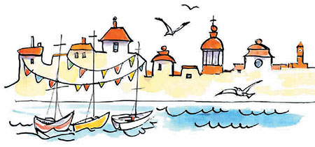Тем временем сотни рыб окружили со всех сторон бабушку и внучек. Конечно, это были не настоящие рыбы, а переодетые люди. Так уж повелось, что в Португалии все любят сардины. Когда-то эту рыбу даже называли королевской – наверное, потому, что её часто подавали во время королевских обедов во дворцах.