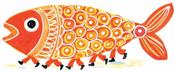 Рыба не плыла, а шла по площади, весело помахивая длинным хвостом. У сардины было ровно десять ног.