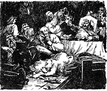 Заинтересованная Гильдис решила сменить гнев на милость и узнать причину радости мужа. Но пока она пробиралась среди столов, пачкая длинный бархатный подол о кучи объедков, с которыми не могли справиться обожравшиеся псы, Оттар в последний раз опорожнил чашу и улегся спать прямо на помосте.