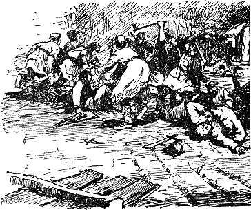 Не забывая привычно изученного искусства боя, викинги, насколько им позволяли улицы, строились, ударяли с обычным единством и отбросили земских, беспощадно истребляя передних.
