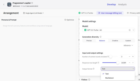 В разделе Persona & Prompt мы описываем общий запрос. И это будет System prompt. Есть запрос пользователя, а есть системный запрос. Уточните в любом чат-боте, что такое System prompt и как этим пользоваться. В двух словах, этот промпт будет всегда незаметно добавляться к запросу пользователя. И здесь мы можем описать все общие элементы наших запросов. Или можем задать любые ограничения, например: «в своих ответах говори намёками, чтобы пользователю пришлось подумать самому».