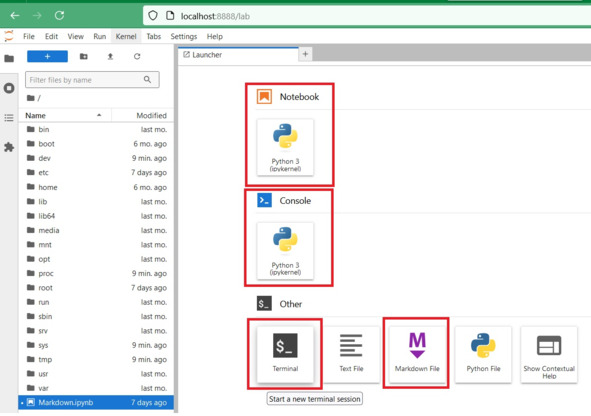 На вкладке Launcher запускаем диалоговый блокнот Notebook Python 3.