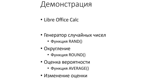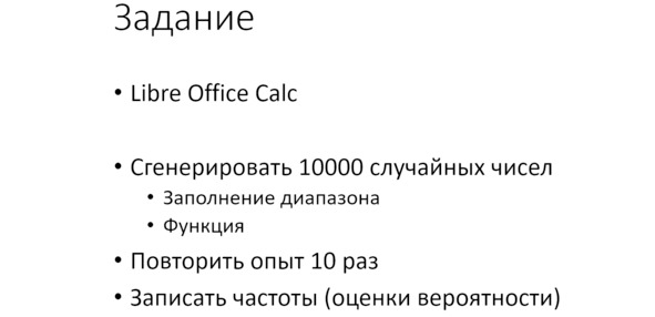 Проведём ещё один эксперимент. Нам предстоит как сгенерировать случайные числа в электронной таблице Libre Office Calc. Calc – это сокращение от слова «Калькулятор».
