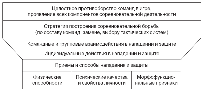 Конечная цель соревновательной борьбы – победа. Для ее обеспечения команде необходимо решить ряд частных задач. Содержание компонентов деятельности по выполнению этих задач в процессе соревнований и составляет структуру соревновательной деятельности (рис. 4).