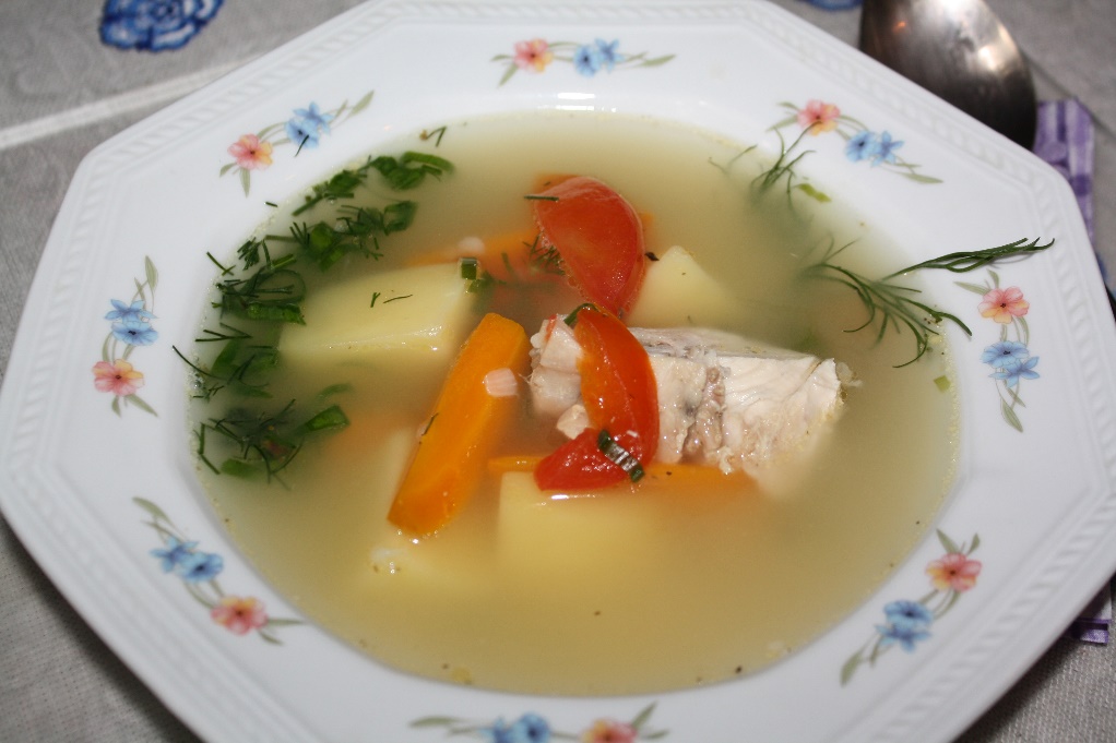 Приправлять уху можно отдельно отваренными овощами и рыбой. Если это красная рыба, то ее предварительно можно замариновать с соком лимона, затем отварить на пару.