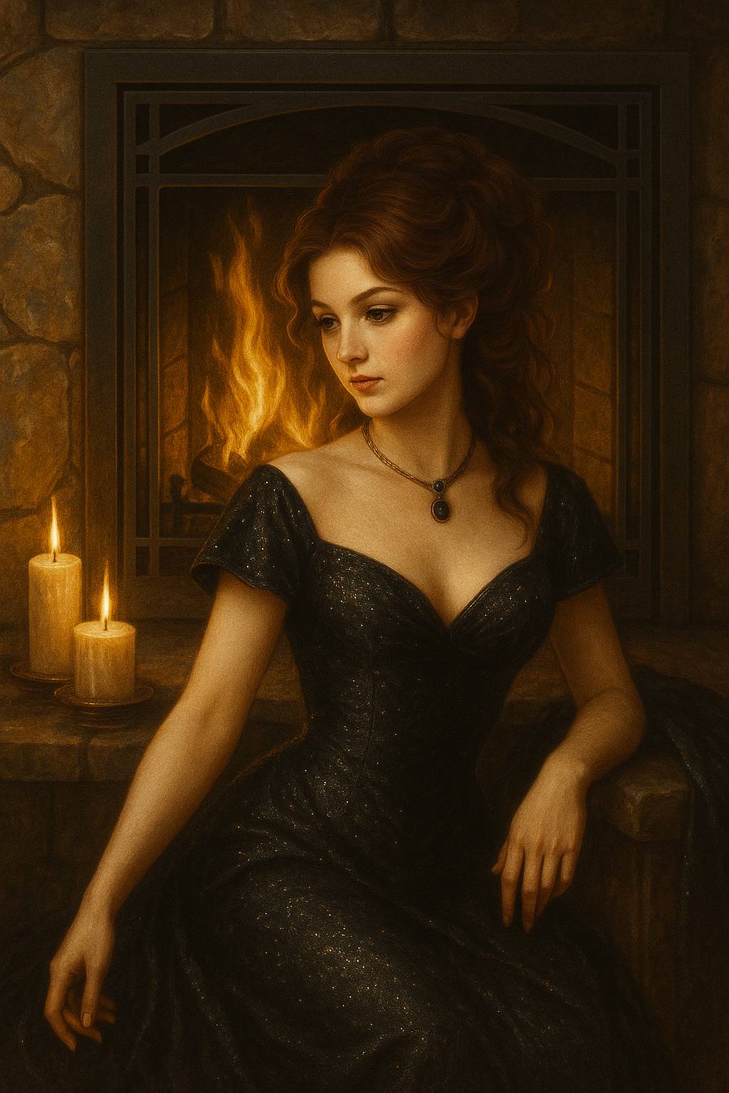 Мадлен вошла в комнату. Поднявшись девушке на встречу восхищаясь её красотой, он галантно поцеловал ей руку. Она была одета в длинное, чёрное поблескивающее и переливающееся в свете камина платье, в тон его костюму. Её волосы были уложены в вечернюю, изящную прическу. На шеи висело колье.