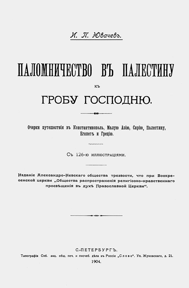 Книга И.П. Ювачева “Паломничество в Палестину к Гробу Господню” (СПб., 1904). Титульный лист.