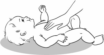Как поглаживать животик и грудь младенцаЖивотик, лежащего на спине ребенка, поглаживают ладонной поверхностью кисти руки или ее тыльной поверхностью по часовой стрелке.