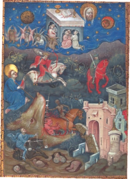 Рис. 12. Нидерландский Апокалипсис XV в. демонстрирует всех всадников одновременно в концентрированном визуальном повествовании.