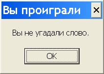 6. Появляется панель типа MessageBox с сообщением “Вы не угадали слово.” (рис. 19.8).