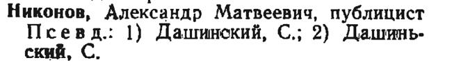 Масанов И.Ф. Словарь псевдонимов русских писателей, ученых и общественных деятелей: В 4‑х т. М., 1960. Т.4. С.340