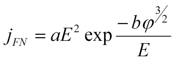 where i is the emission current density, E is the electric field strength, φ is the output operation, functions a and b depend on the geometry and operation of the output, for example, the degree of asymmetry, height, and width of the potential barrier. The current carrier flow should occur: a) due to the increasing (due to the Poole-Frenkel effect) thermionic emission through the potential barrier (jFN) of electrons with an increase in the magnitude of the corona discharge potential, b) due to the autoelectronic emission of current carriers trapped in the semiconductor oxide into the CdTe (jFN) conduction band. Since the contributions to the total current from the above currents are different in magnitude, the continuity of the current is disrupted at the interface. Thus, the excess (nonequilibrium) current carriers that appear in this case lead to the accumulation of charge at the interface. This leads to a redistribution of the internal electric field, which is essential in the formation of a potential barrier relief.