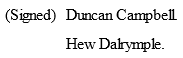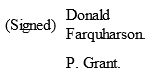 Compeared John Grant, in Altalaat, aged forty years and upwards, married, solemnly sworn, purged of malice and partial council, examined and interrogate: Depones, That both the panels lodged in his house upon the night of the twenty-seventh of September, one thousand seven hundred and forty-nine: That next morning they breakfasted, after the sun rising, with him; and as he was going to a Michaelmas fair, when he came out of his house, he looked and saw the two panels at his door, each having a gun in his hand, and they told him that they intended to go a deer hunting, but did not mention to what place: That the deponent accordingly went to the fair, and returned in about four days home, and then heard that a soldier who had been upon some of the hills was amissing, and in a very short time heard it was Serjeant Davies: That at first it was rumoured that some of the Serjeant's own men had killed him; and afterwards that he had been killed by some outlaws; and after that it was clattered that the panels had killed him: Depones, That the night the panels lodged with him as above, one of them talked of going the next morning in quest of horses for leading in corn, without mentioning from where. Causa scientiæ patet. And this is the truth, as he shall answer to God. This deposition signed by Duncan Campbell, sworn interpreter.