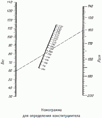 Для определения конституции тела существует много способов, но самый простой, которым можно воспользоваться – это определение по номограмме, которую мы приводим ниже.