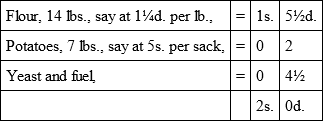 The yield, 20 lbs., or 5 loaves of 4 lbs. each, will be nearly 5d. each, which is dearer than the wheaten loaves at 4d. each, and the bread, besides, of inferior quality.