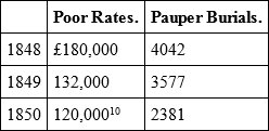 Indicating the deplorable destitution of multitudes in the midst of this growing wealth and unparalleled increase of manufacturing and commercial greatness. In the last year, out of 10,461 burials, no less than 2381, or nearly a fourth, were at the public expense.11
