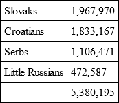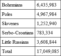 Figures, better than anything else, will explain why the Slavs were opposed to dualism and presently became its irreconcilable enemies. Under the Austrian roof Beust put these Slavic groups (quoting from the census of 1910):