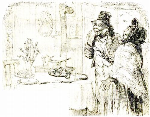 "Who's bin hiyar? What dose chillen bin about? Good gracious me! if dis ain't a dinner fit fur a king."