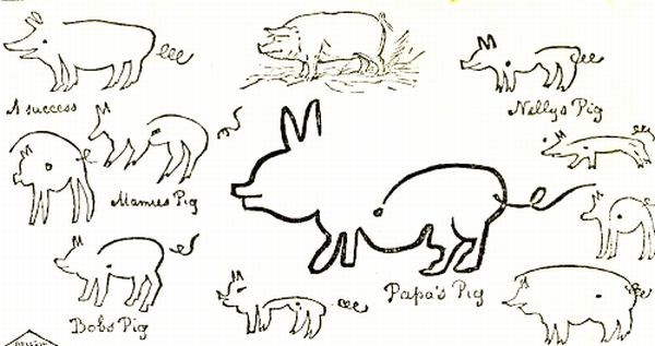 "Now you all take a pencil and piece of paper," he directed, "and try to draw a pig with your eyes shut."