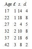 Specimens of Rates of Premium for Assuring 100l., with a Share in three-fourths of the Profits:—