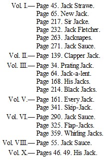 (Vol. vii., p. 326.)The list of Jacks supplied by your correspondent John Jackson is amusing and curious. A few additions towards a complete collection may not be altogether unacceptable or unworthy of notice.
