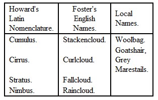 Poets in all ages have watched the clouds with interest; and Shakspeare has not only correctly described them, but has, in metaphor, used them in some of his sublimest passages. Ariel will "ride on the curled clouds" to Prospero's "strong bidding task" that is, ride on the highest Cirrus cloud, in regions impassable to man. How admirably the raining Cumulus (Nimbus cloud) is described in the same play:
