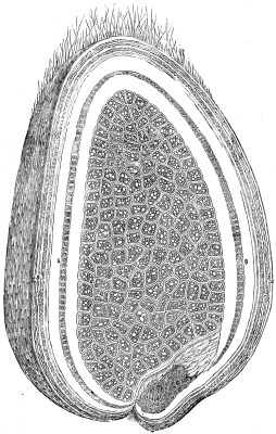 The endosperm and the embryous membrane are the most interesting parts of the berry; the first is one of the depots of the plastic aliments, the second contains agents capable of dissolving these aliments during the germination, of determining their absorption in the digestive organs of animals, and of producing in the dough a decomposition strong enough to make dark bread. We shall proceed to examine separately these two parts of the berry.