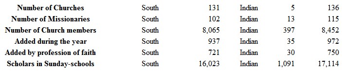 This is a portion of the South where slavery scarcely existed. When war came, it was loyal to the Union almost to a man. This fact shows that they have a natural affiliation with "Northern ideas." The caste spirit is among them—as it is indeed in the North to some extent—but it much more readily yields to reason and loving teaching than in other portions of the South. Vigorous and extensive missionary work can and will mould the ideas and sentiments of this whole region, and thus establish no-caste churches and schools, where they would demonstrate to the South that they do not carry with them social disorder and every baleful influence.