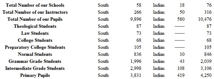 The common schools, 35 in number, in eight different Southern States, are in the hands of faithful teachers.
