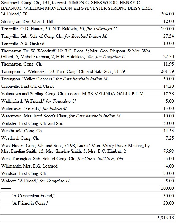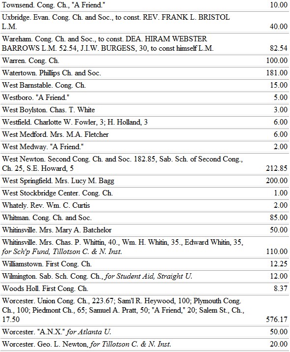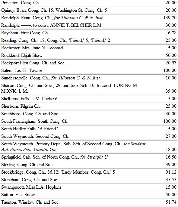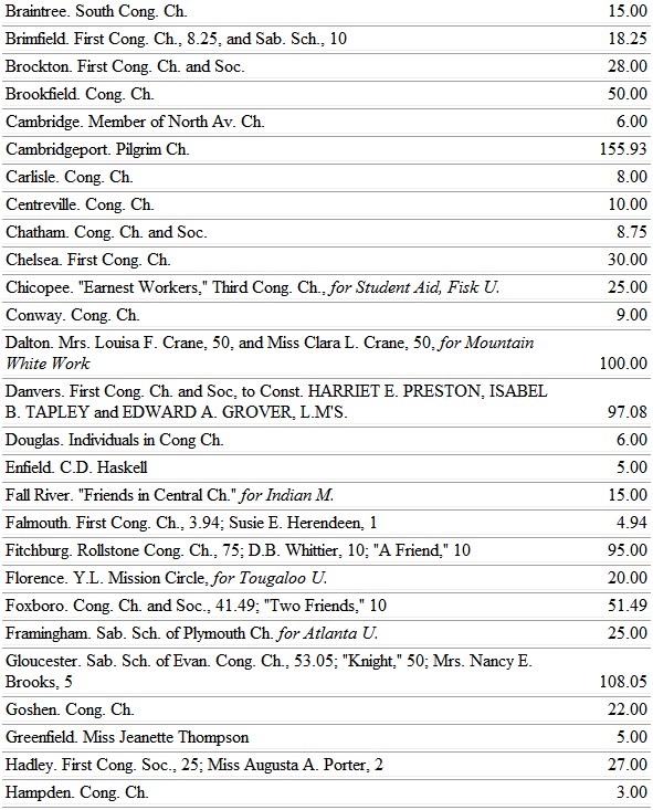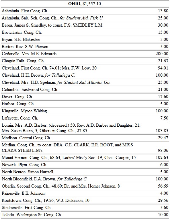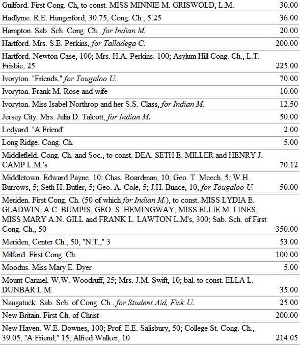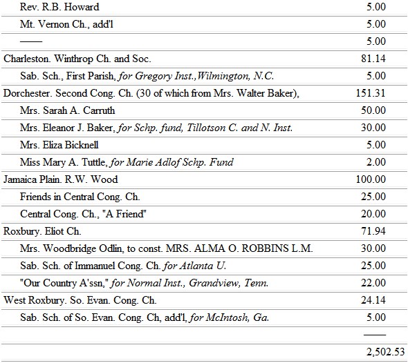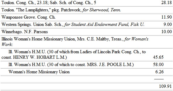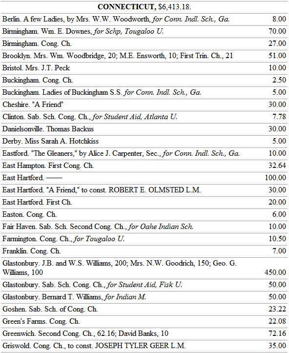 The Michigan ladies find large opportunity to work for the blacks, through the Trinity School, at Athens, Ala. So, also, the Minnesota ladies, whose chosen field is the school at Jonesboro, Tenn.