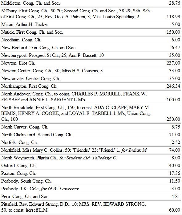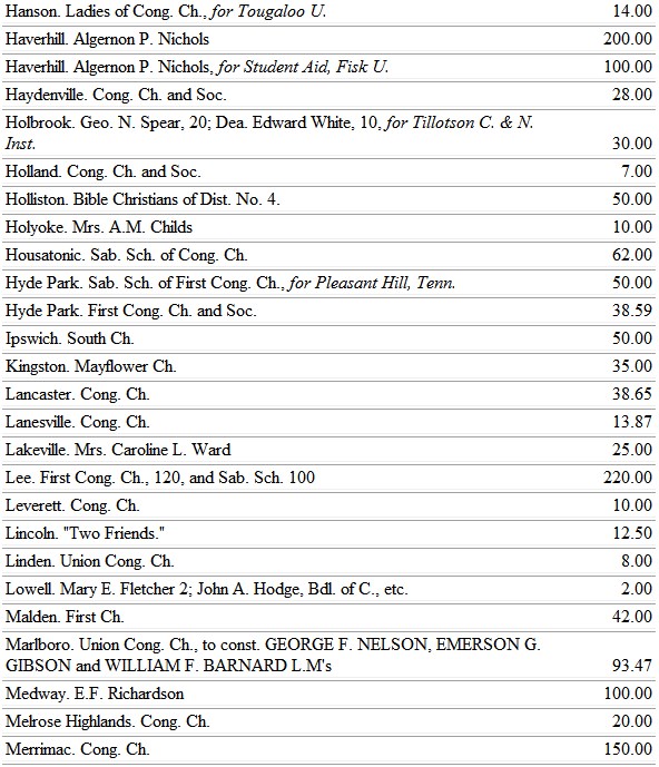 Massachusetts ladies are contributing to the Girl's Department of the boarding school at Tougaloo, Miss. Letters are written by the teachers in turn, thus reporting the different phases of work.