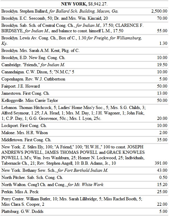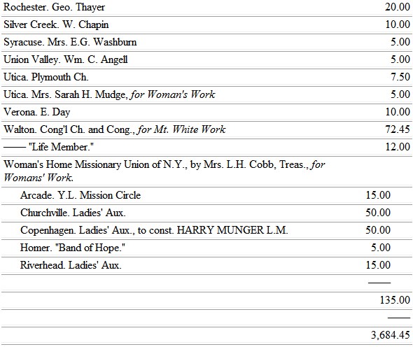 The auxiliaries of the New York Union are entitled to letters from Miss Edith Leonard, (in place of Miss Haynes,) for the Indians, Mrs. Myers for the Mountain Whites, and Miss Evans for the Negroes.