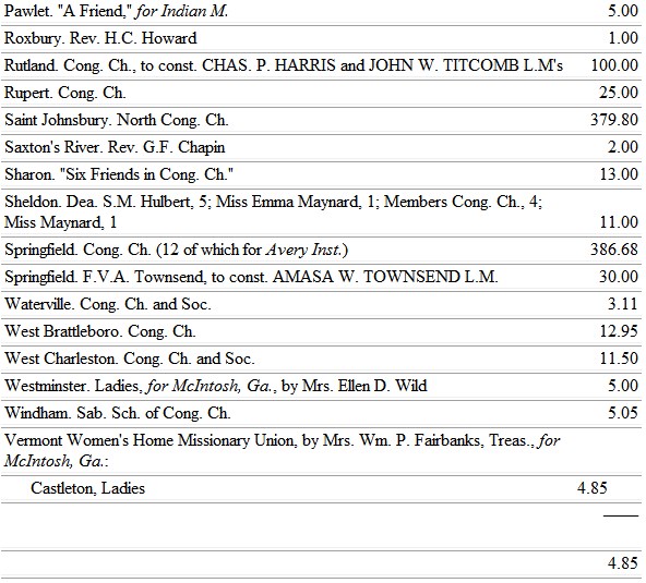 VT.—Woman's Home Miss. Union, Secretary, Mrs. Ellen Osgood, Montpelier, Vt.
