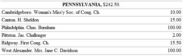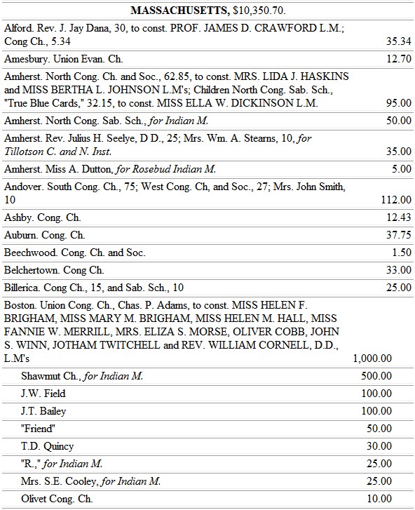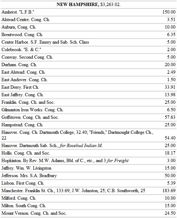 We may not close this review of our year's work and attendant suggestions without remembrance of our indebtedness to the American Bible Society, for its grant of Bibles; to the Congregational Sunday-school and Publishing Society for the help given to our struggling churches and Sunday-schools in its grant of books and lesson helps. We rejoice in the unity of our societies, which make all one in the blending of the parts for the great common purpose of redeeming the lost and gathering them into the family of Christ.