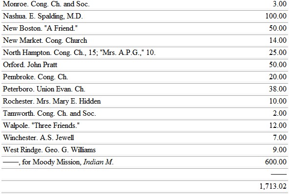 Thus charged, we have yet gone within our instructions. We have made every dollar do more than its work. We have gathered up the fragments that nothing be lost; and yet to-day our payments anticipate our receipts by the sum of $5,641.21. We do not regret the anxiety and pain which it has cost us to effect what we have. The generous words of sympathy and confidence that have come to us of late, with noble gifts, large and small, repay the solicitude and incessant care. We thank God and his people, and hold firmly our faith in Him who said, "Knock, and it shall be opened unto you." He opened the door. Our faith is in Him who also said, "Ask, and ye shall receive."