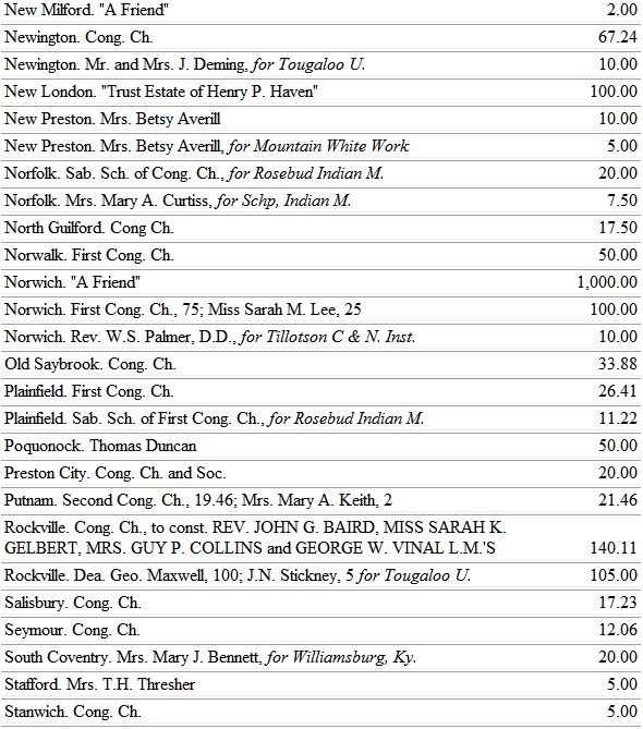 The industrial School, at Thomasville, Ga. appeals especially to ladies of Connecticut. Mrs. Gordon and Miss Knapp will continue their monthly letters, with occasional communications from other teachers.