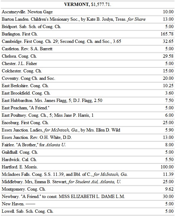 Vermont sustains the McIntosh School, Miss Plimpton continues in charge, assisted by Misses Ayer, Kuhl, and Head.