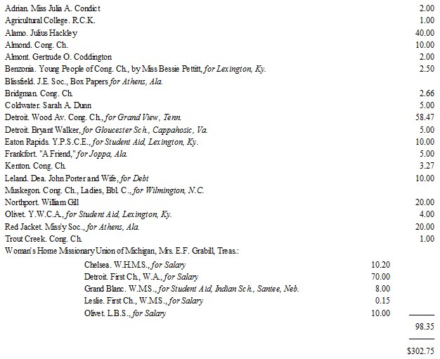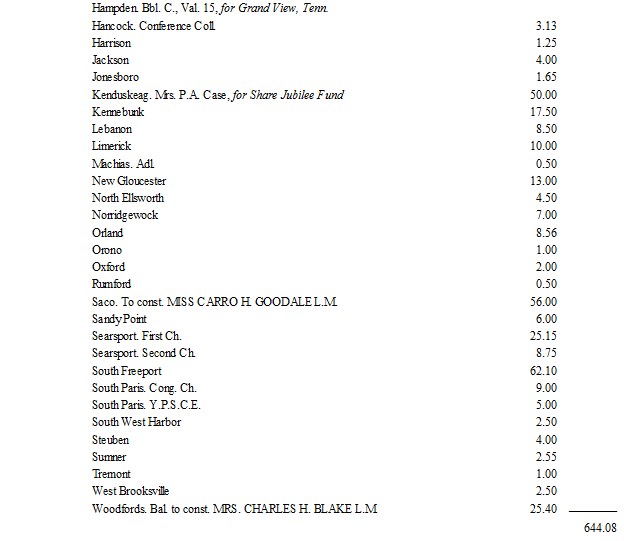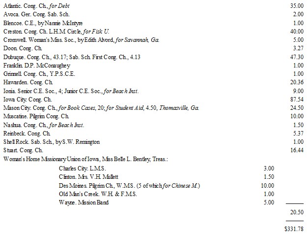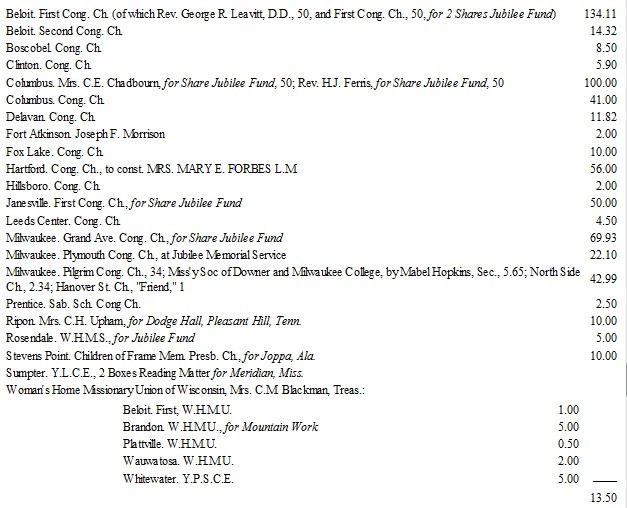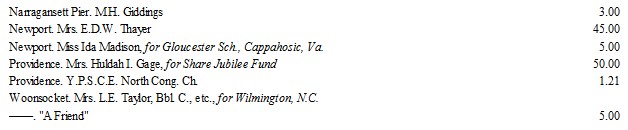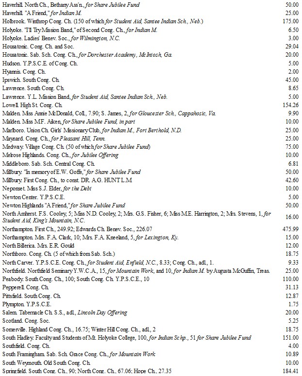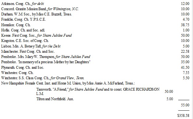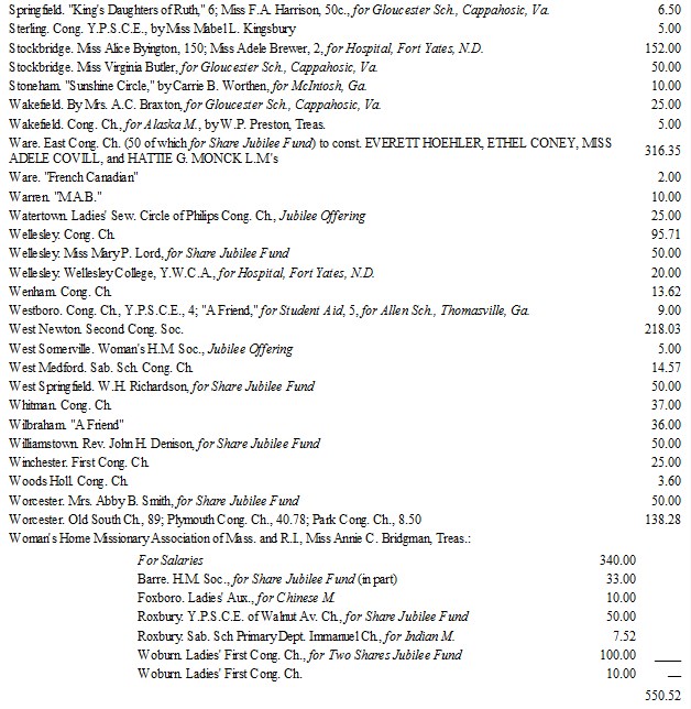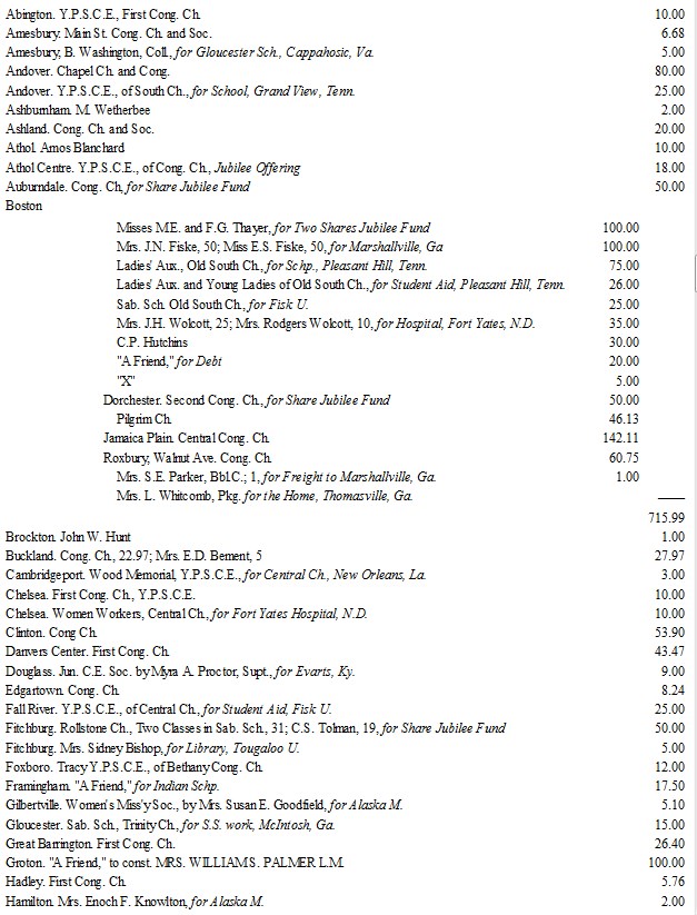 Treasurer—Miss Annie C. Bridgman, 32 Congregational House, Boston.